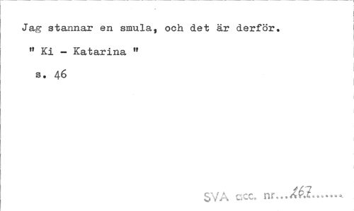 //// Jag stannar en smula, och det är derför. " Ki - Katarina " s. 46 //// SVA ccc, nr... ////