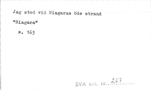 //// Jag stod. vid Niagaras öde strand "Niagara" s. 163 //// SVA ccc. nr...-- — — - ////