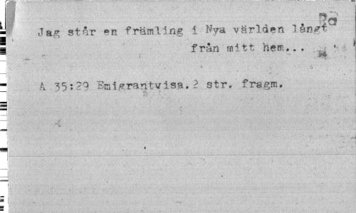 //// I //// ; Jag står ®n främling i Nya världen 1 ¦ //// I från mitt hem... //// - " 3» ' //// ¦ A 35:Eni^rantvisa.2 str. fragm. i //// J. //// ¦ //// i— . .i.--——._.„... ...:___.___ i ' //// —i ////