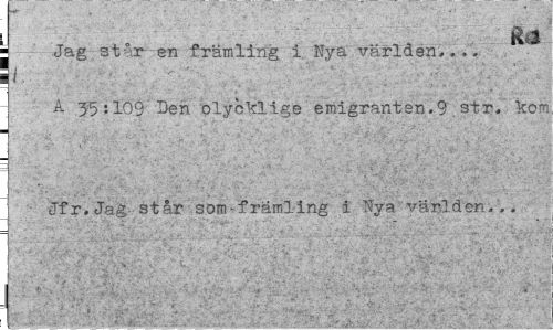 //// k 3 //// Jag st-ar en främling i Nya världen,, //// i. //// A 35:109 Den olycklige emigranten.9.str, kem Jfr. Jag- står som-främling i Nya världen... //// i •• ••..." - >; ' - < • .¦ . ¦ . ¦. ' • / . •- • -.*- ' - . .-v . ////