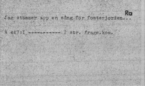 //// Ro //// Jag stämmer -App en sång för fosterjorden... //// V-/ t-:';^-' ' ' " > ' ' ' - , . ; 1 , ¦ - y . ¦ < i''' //// A 447:1 ---2 str. fragm.kom. //// 8»"'-. * ; V m. "•' •.'A ' - V »V"' • ' - ' ' *' *. * 'f • V . • 1' •*•*' '.'.. ' . . " - N . //// vv . . ; ' • / ' . . ' , ' * . 'f-*' ' ' ..S- "•';'• ' ••; " . vj. ////