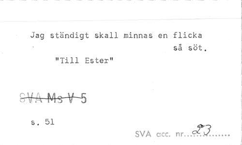 //// Jag ständigt skall minnas en flicka //// så söt. //// "Till Ester" //// s. 51 //// SVA ccc. nr...9?2... ////