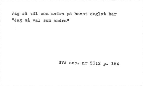 //// Jag så väl som andra på havet seglat har "Jag så väl som andra" //// SVA acc. nr 53t2 p. 164 ////