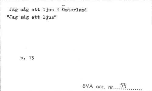 //// Jag aåg ett ljus i Osterland "Jag såg ett ljus" //// s. 13 //// SVA occ. nr...^ ////