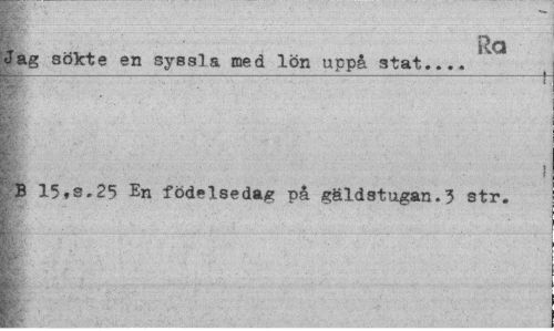 //// i Ra //// Jag sökte en syssla med lön uppå stat... //// ! //// B 15,s.25 En födelsedag på gäldstugan.3 str. ////