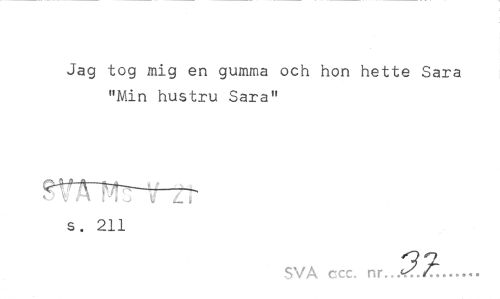 //// Jag tog mig en gumma och hon hette Sara "Min hustru Sara" //// o\ A \A Z i Z i //// s. 211 //// SVA ccc. nr. //// ... ////