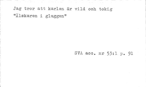 //// Jag tror att karlen är vild och tokig "Älskaren i gluggen" //// SVA acc. nr 53:1 p. 91 ////