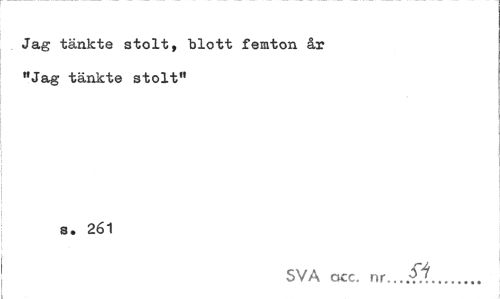 //// Jag tänkte stolt, "blott femton år MJag tänkte stolt" //// s. 261 //// SVA acc. ... ////