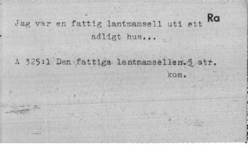 //// Ro //// Jag var en fattig lantmamsell uti ett //// adligt hus... //// A 325:1 Den fattiga lantmans el le nv^ str. //// kom. ////