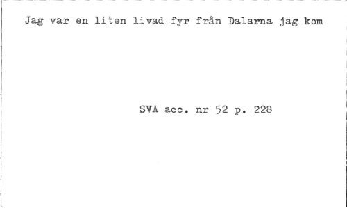 //// Jag var en liten livad fyr fr&n Dalarna jag kom //// SVA acc. nr 52 p. 228 ////