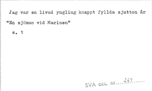 //// Jag var en livad yngling knappt fyllda sjutton år "En sjöman vid Marinen" s. 1 //// SVA ccc. nr... ////