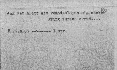 //// Jag vet blott att vemodsslolan alg sänkte" //// kring furans, skrud... //// B 75,s.83 ---1 str. ////