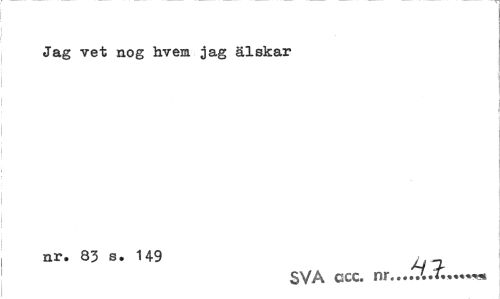 //// Jag vet nog hvem jag älskar //// nr. 83 s. 149 _ //// SVA ccc. ////