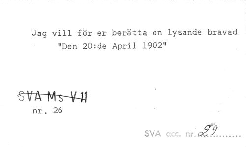 //// Jag vill för er berätta en lysande bravad "Den 20:de April 1902" //// stA-n^ni //// nr. 26 //// SVA ccc. nr. £1... ////