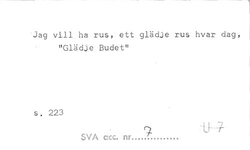 //// Jag vill ha rus, ett glädje rus hvar dag, "Glädje Budet" //// s. 223 //// o iK/- //// SVA ccc. nr... ////