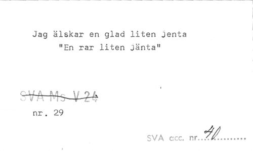 //// Jag älskar en glad liten Jenta "En rar liten jänta" //// nr. 29 //// SVA c : nr-.^.?.'.!... ////