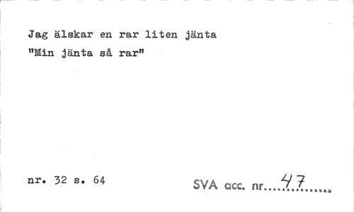 //// Jag älskar en rar liten jänta "Min jänta så rar" //// nr' 32 s* 64 SVA ccc. ////