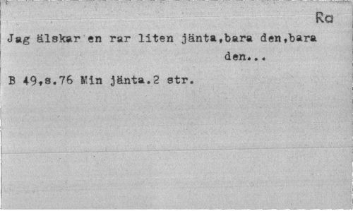 //// Rq //// Jag älskar en rar liten jänta,bara den,bara //// den... //// B 4-9,8.76 Kin jänta.2 str. ////