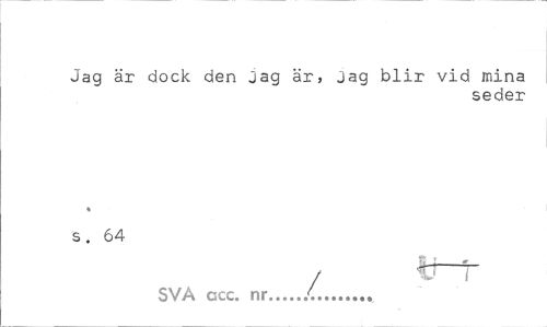 //// Jag ar dock den jag är, jag blir vid mina //// seder //// s. 64 //// % * //// / V~~T //// SVÅ gcc. nr.../... ////