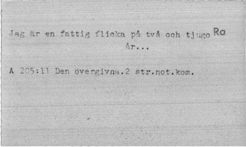 //// Jag är en fattig flicka p^ två och tjugo //// o //// ar. .. //// A 205:11 Den övergivna.2 str.not.kom. ////