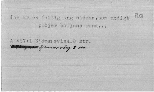 //// kr en fattig ung sjörian»so® modigt plöjer böljans rand... //// A 4 67 il Sjöman sv Isa.8 str. //// 'PiHlM'/' tr+f'»'**»* f r c ////