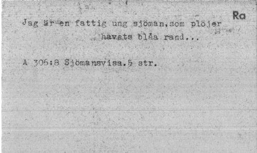 //// iiIf; . & i: Ro //// Jag är -en fattig ung sjömän,som plöjer //// havets blåa rand... //// A 306:3 Sjömänsvisa.5 str. //// T ' -¦'" " :: 7 . A:¦ •;.. \ //// ' • " -V ... -Tv, r - ' V ' . - //// 1 ' ' ' . - 4 • -'Y.' r- 'C ' ~ p-'- .; 'i / " / - . ' ^ '•''.. * • 'i- //// | .. • - V . V, V...:' ' "'- ' ////