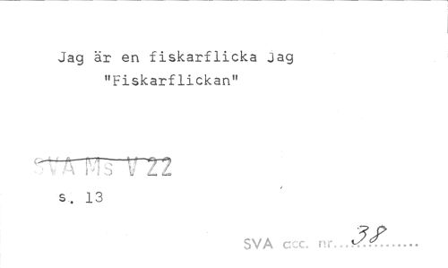 //// Jag är en fiskarflicka Jag "Fiskarflickan" //// M 1 V Z. L //// s, 13 //// SVA ccc. nr..M!A... ////