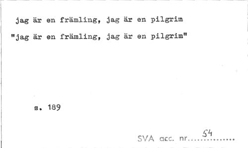//// jag är en främling, jag är en pilgrim "jag är en främling, jag är en pilgrim" //// a. 189 //// SVA acc. nr... ////