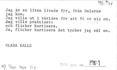 //// TU-' Il/ //// Jag är en liten livade fyr, från Dalarne jag kom. //// Jag ville ut i världen för att få se mig om. Jag ville praktisera • '- //// och fliekor kurtisera. //// Ja, flickor kurtisera det tycker jag väl om. GLADA KALLE //// rt-Wta* II,. SVA ccc. n,. JM... ////