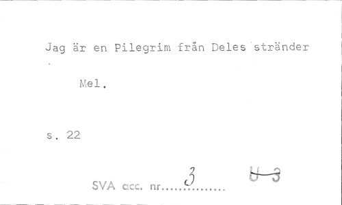 //// Jag är en Pilegrim från Deles stränder Mel. //// s. 22 //// o,a 3 //// SVA ccc. nr...h... ////