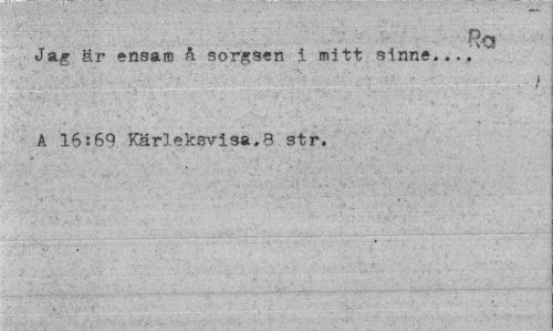 //// Ho //// Jag är ensam A sorgsen i mitt sinne... A 16:69 Kärleksvisa.8 str. ////