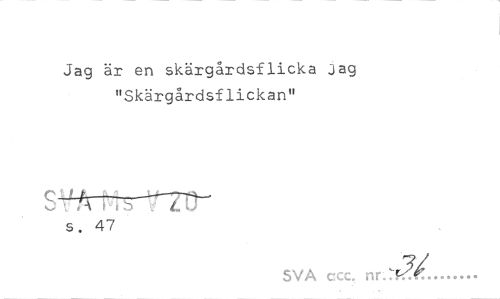 //// Jag är en skärgårdsflicka jag "Skärgårdsflickan" //// S\'A Ms 20~* //// s. 47 //// SVA ccc. nr..M!A... ////