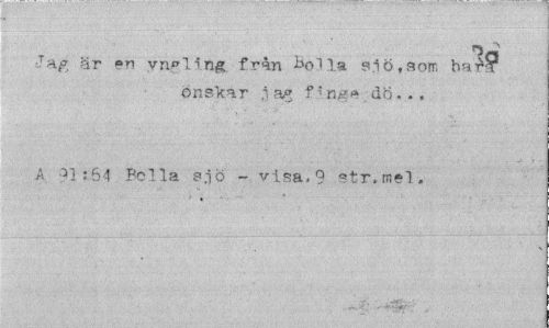 //// Jag är yngling fr4n Bolla siö,som bar? önskar ,1 ag f¦'ng* dö.., //// A 91J6.4 Bolla sjö - visa.9 str.mel. //// v ////