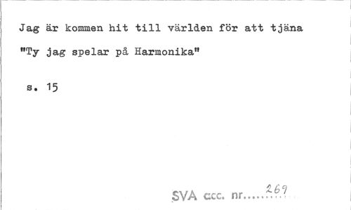 //// Jag är kommen hit till världen för att tjäna "Ty jag spelar på Harmonika" //// s. 15 //// SVA ccc. nr... ////
