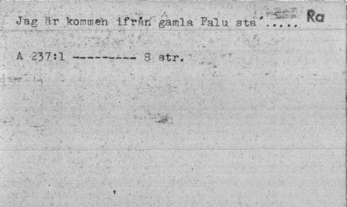 //// Jag är kommen ifrån gamla Falu stå'. .7/. G //// A 237:1 ---S str. //// » ////