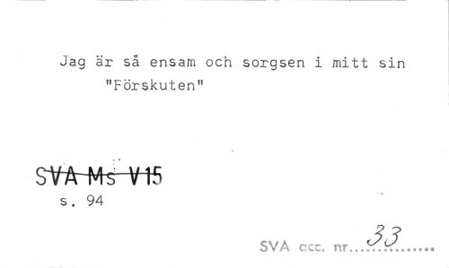 //// Jag är så ensam och sorgsen i mitt sin "Förskuten" //// s. 94 //// SVA ccc. ////