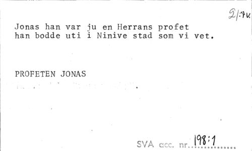 //// Jonas han var iu en Herrans profet han bodde uti i Ninive stad som vi vet. //// PROFETEN JONAS //// SVA ccc. nr.'.$$i.t... ////