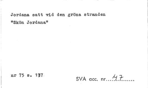 //// Jordana satt vid den gröna stranden "Skön Jordana" //// nr 75 S' 137 O/A M //// SVA ccc. nr...7.77... ////