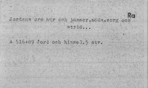 //// Ra //// Jordens oro h«r och jämmer.möda,sorg och 11 ¦ strid... //// K > //// A 516:69 Jord och himme1.5 str. ////