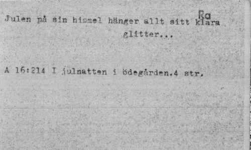 //// Ra //// Julen p.å. sin himmel hänger allt sitt klara //// glitter... //// A I6i214 I julnatten i odegården.4 str. ////