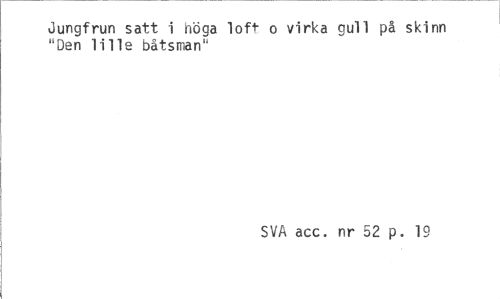 //// Jungfrun satt i höga lofi- o virka gul 1 på skinn "Den lille båtsman" //// SVA acc, nr 52 p. 19 ////