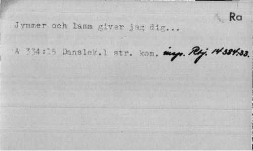 //// Ra //// J7mmer och lamm giver jag dig.., 4 334:15 Danslek. 1 str. kom. '^SSfto*. ////