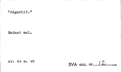 //// "Jägarlif." Endast mel. //// nr. 64 s. 48 i A //// SVA acc. nr...'.»w.. ////