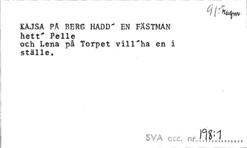 //// 4/-fyyw //// KAJSA PÅ BERG HADD" EN FÄSTMAN hett" Pelle //// och Lena på Torpet vill'ha en i ställe» //// SVA ccc. nr J°IV.1... ////