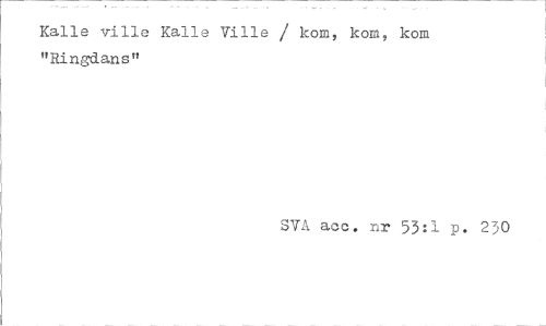 //// Kalle ville Kalle Ville / kom, kom, kom "Ringdans" //// SVA acc. nr 53si p. 250 ////