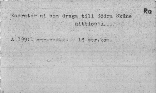 //// . Ro //// Kamrater ni som draga till Södra Skåne //// nittiosju... //// A 199:1--- 13 str.kom. ////