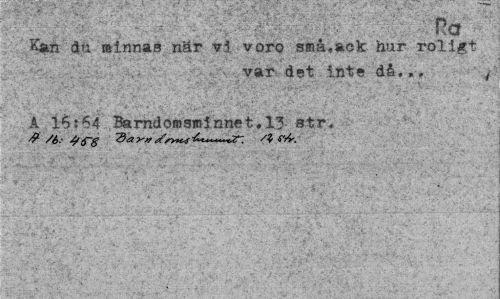 //// na //// Kan du minnas när vi voro små,ack hur roligt //// var det inte då,., , //// A 16:64 Barndomsminnet.13 str. ////