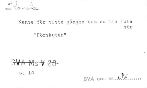 //// Kanse för sista gången som du min luta //// hör //// "Förskuten" //// s . 14 //// SVA ccc. nr..X/.f... ////