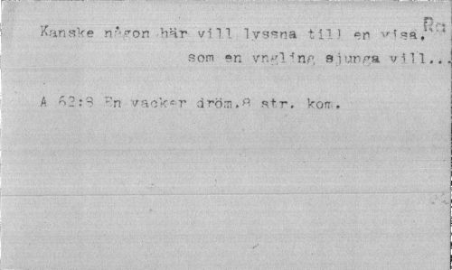 //// 3* A //// tf 't //// Kanske nr*gon bär vill lyssna til) er vi //// som en vngl ing sunga vill.. //// A £>2:3 "n vacker dröm,° str. kon. //// i ////
