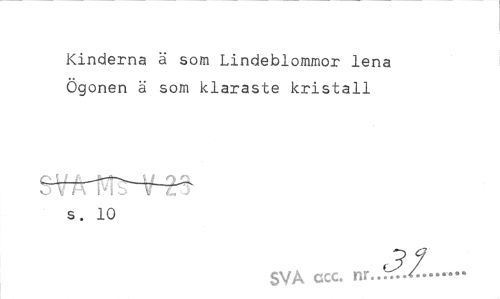 //// Kinderna ä som Lindeblommor lena Ögonen ä som klaraste kristall //// s. 10 //// SVA ccc. --- ////